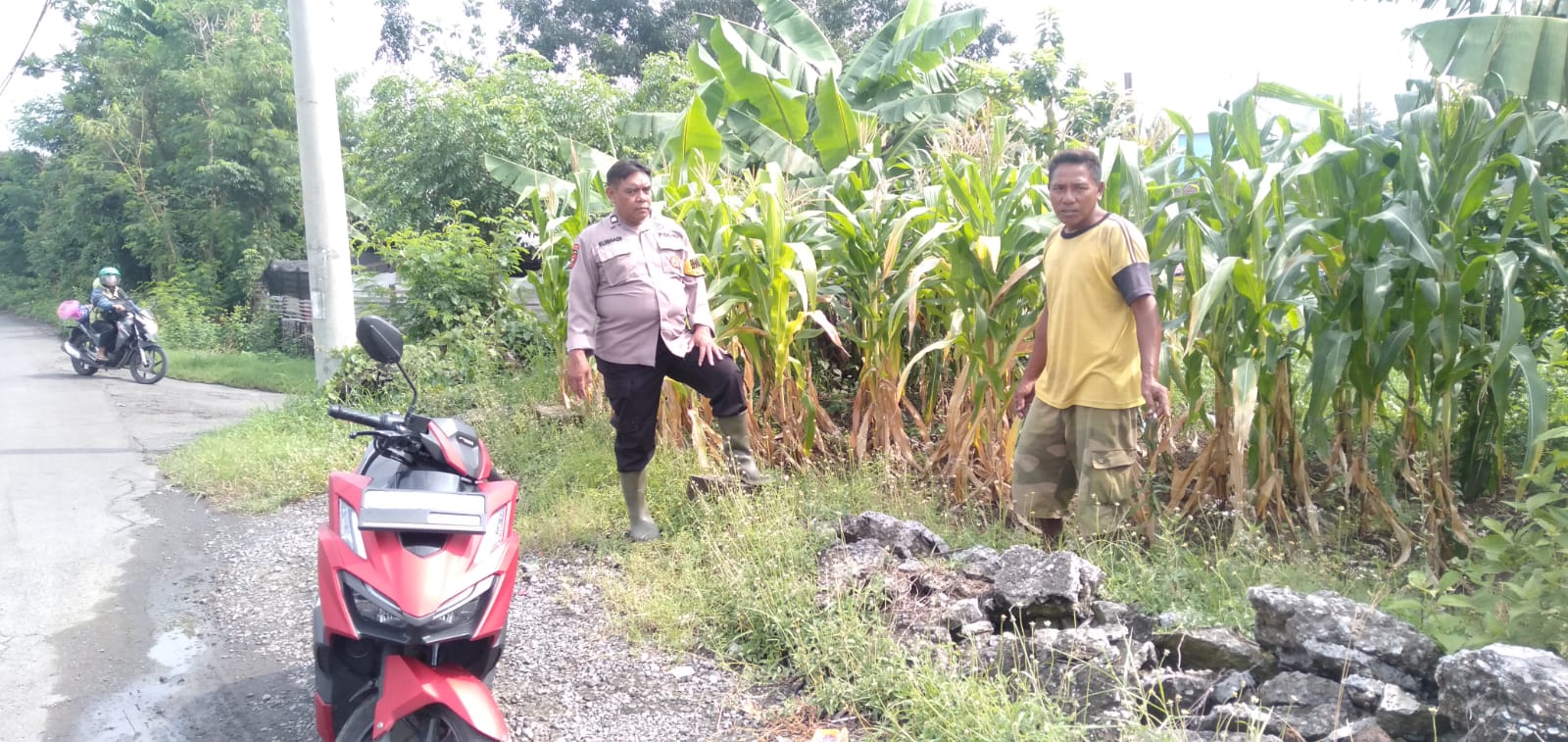 Bhabinkamtibmas Polsek Tanggulangin, Polresta Sidoarjo memotivasi warga dalam olah lahan tanaman jagung, wujudkan ketahanan pangan di Desa Gempolsari, Sidoarjo.