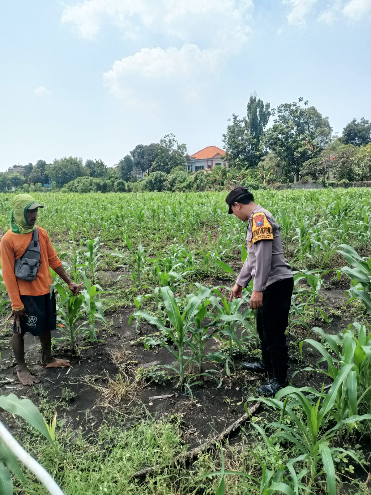 Polresta Sidoarjo melalui Polsek Taman dampingi warga Kel. Sepanjang dalam perawatan lahan jagung untuk ketahanan pangan di Kab. Sidoarjo, Jawa Timur