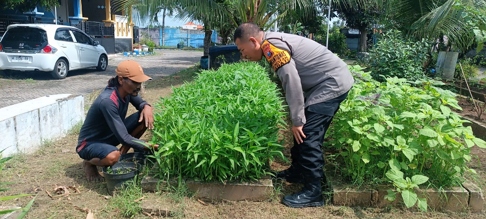 Polresta Sidoarjo melalui Polsek Sedati membantu jual kakngkung hasil tanam warga warga untuk upaya Ketahanan pangan di Desa Buncitan, Sidoarjo, Jawa Timur melalui tanaman sayuran