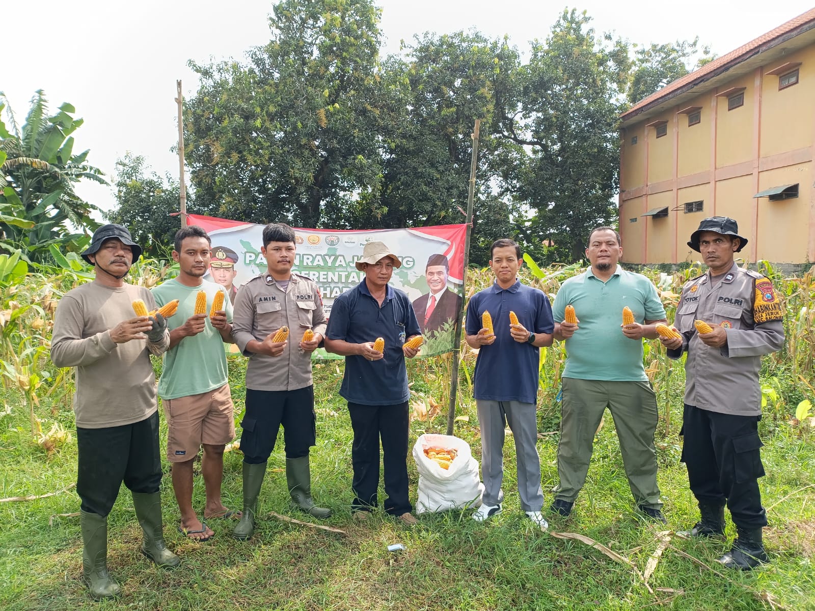 Polresta Sidoarjo melalui Polsek Balongbendo bersama warga Desa Penambangan dalam panen jagung untuk ketahanan pangan di Sidoarjo, Jawa Timur